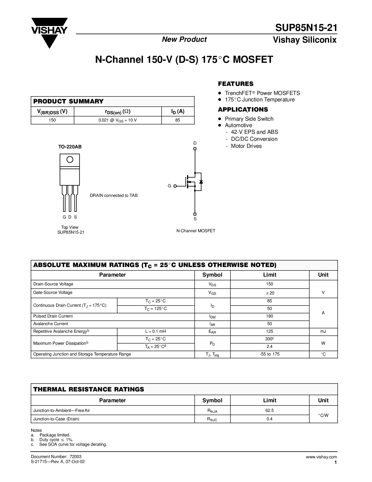 sup85n15-21-e3 最低价格3.50元 ,最高价格3.50元 ,平均价格 3.5元